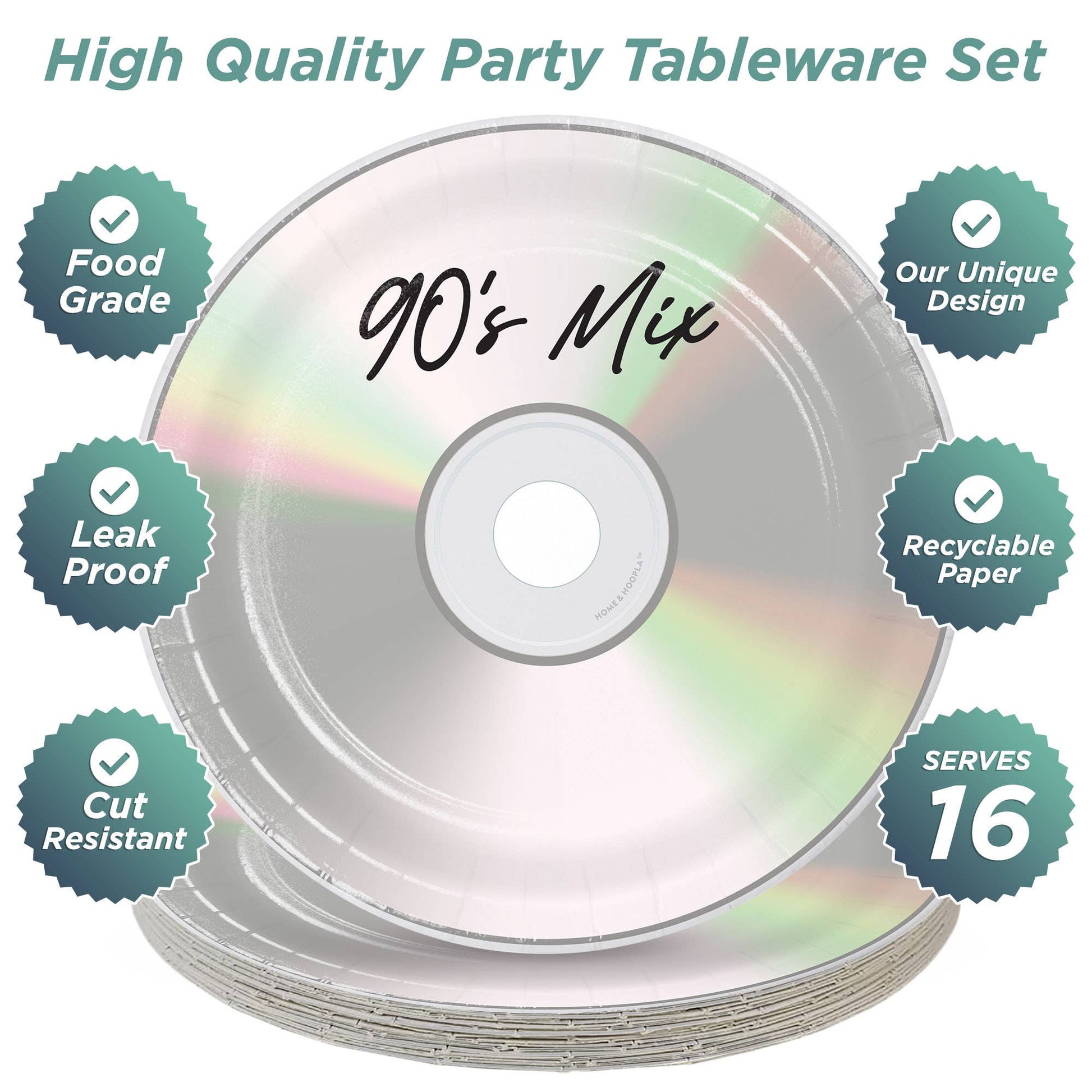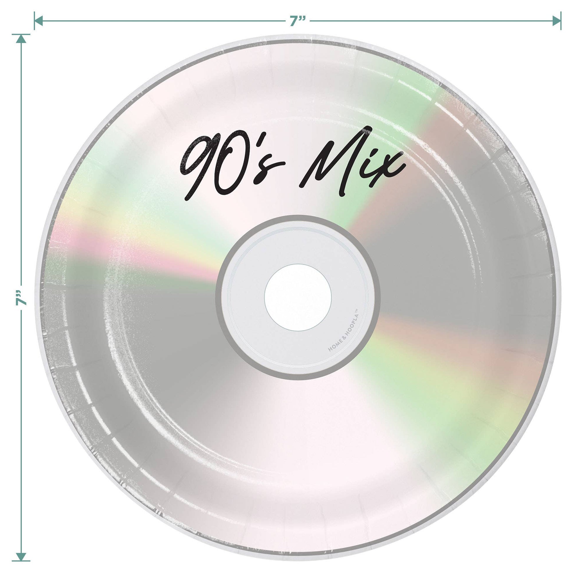 1990's Mix Playlist Round CD Paper Dessert Plates for 16 Guests Celebrate the 1990's with these 90's Mix Playlist CD Dessert Plates!