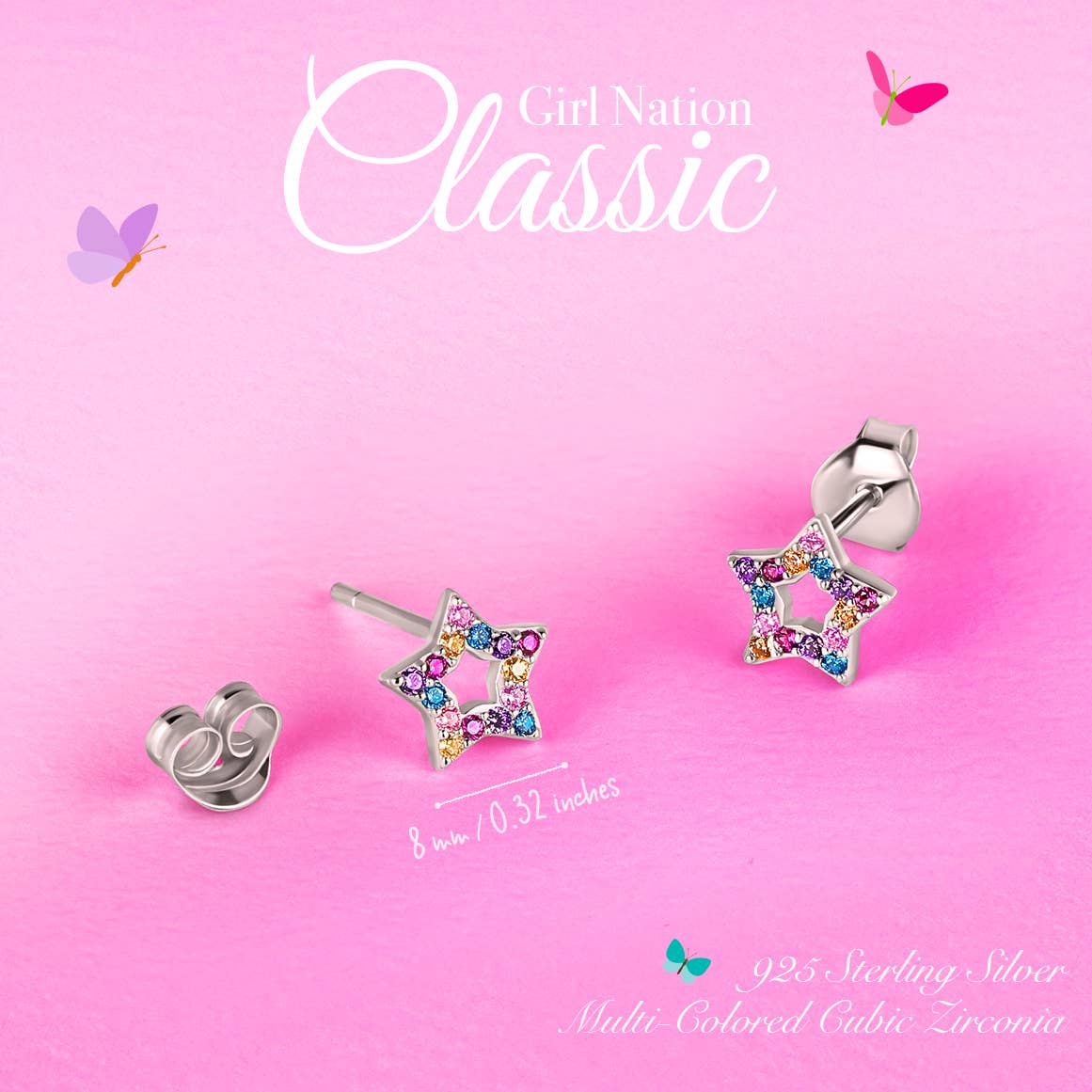 Sterling silver is one of the safest options for kids, as it is naturally hypoallergenic and safe for sensitive ears. The multi-colored star earrings feature 925 sterling silver with sparkling, colorful cubic zirconia accents.