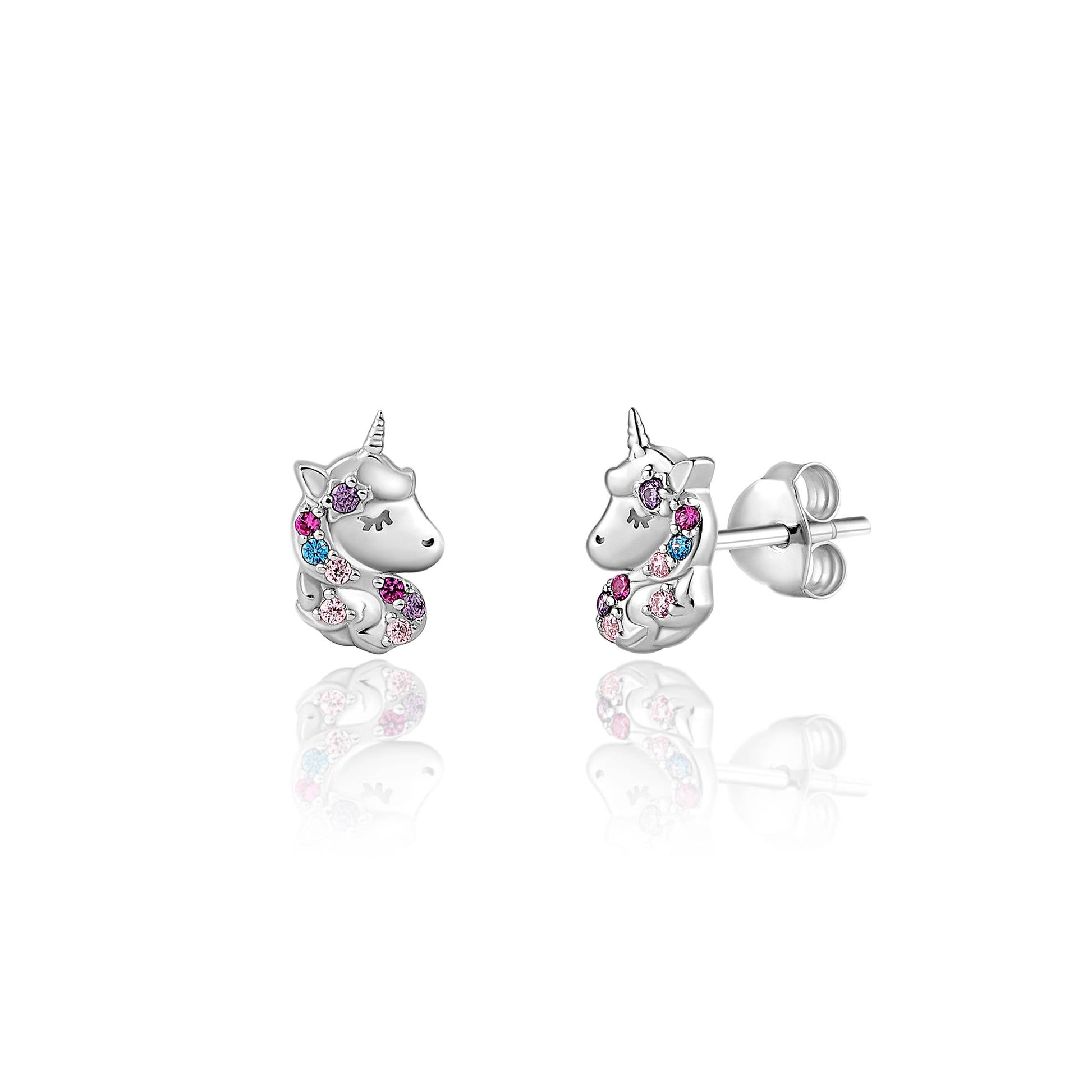 The unicorn earrings feature 925 sterling silver with sparkling, colorful cubic zirconia accents.