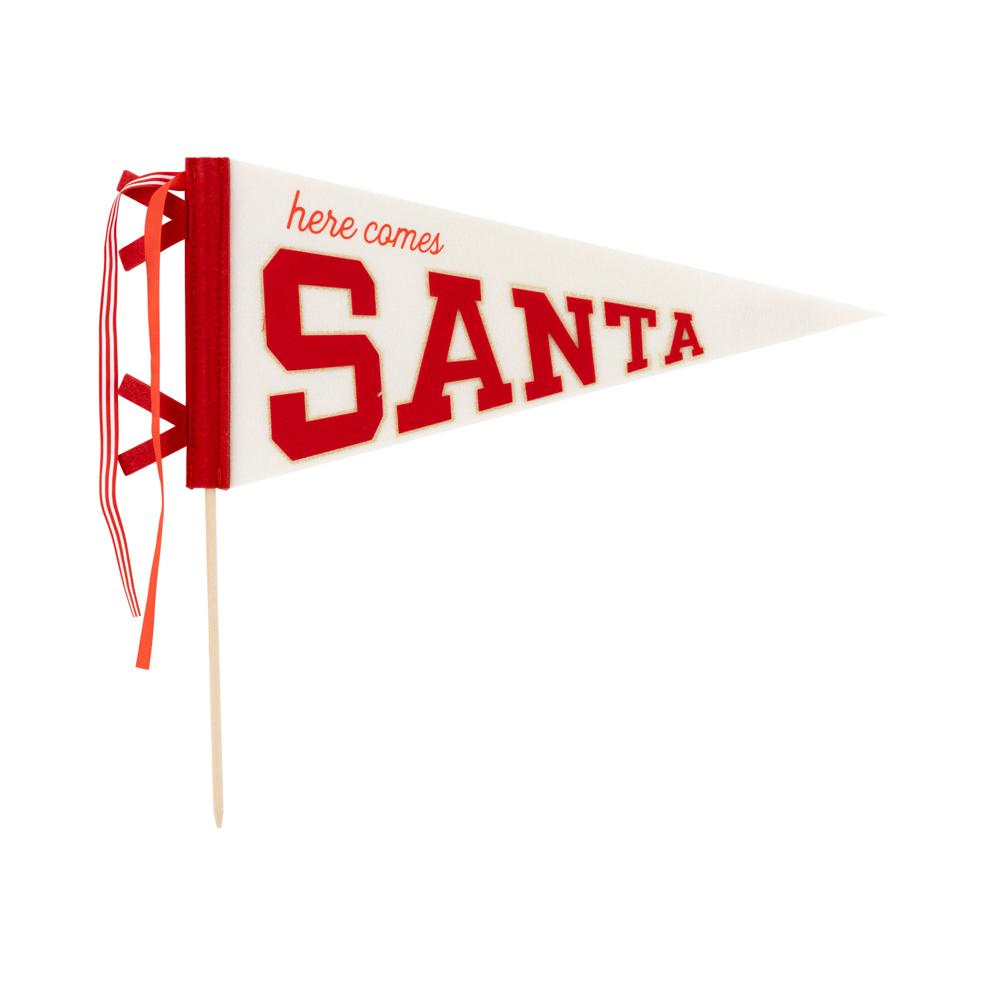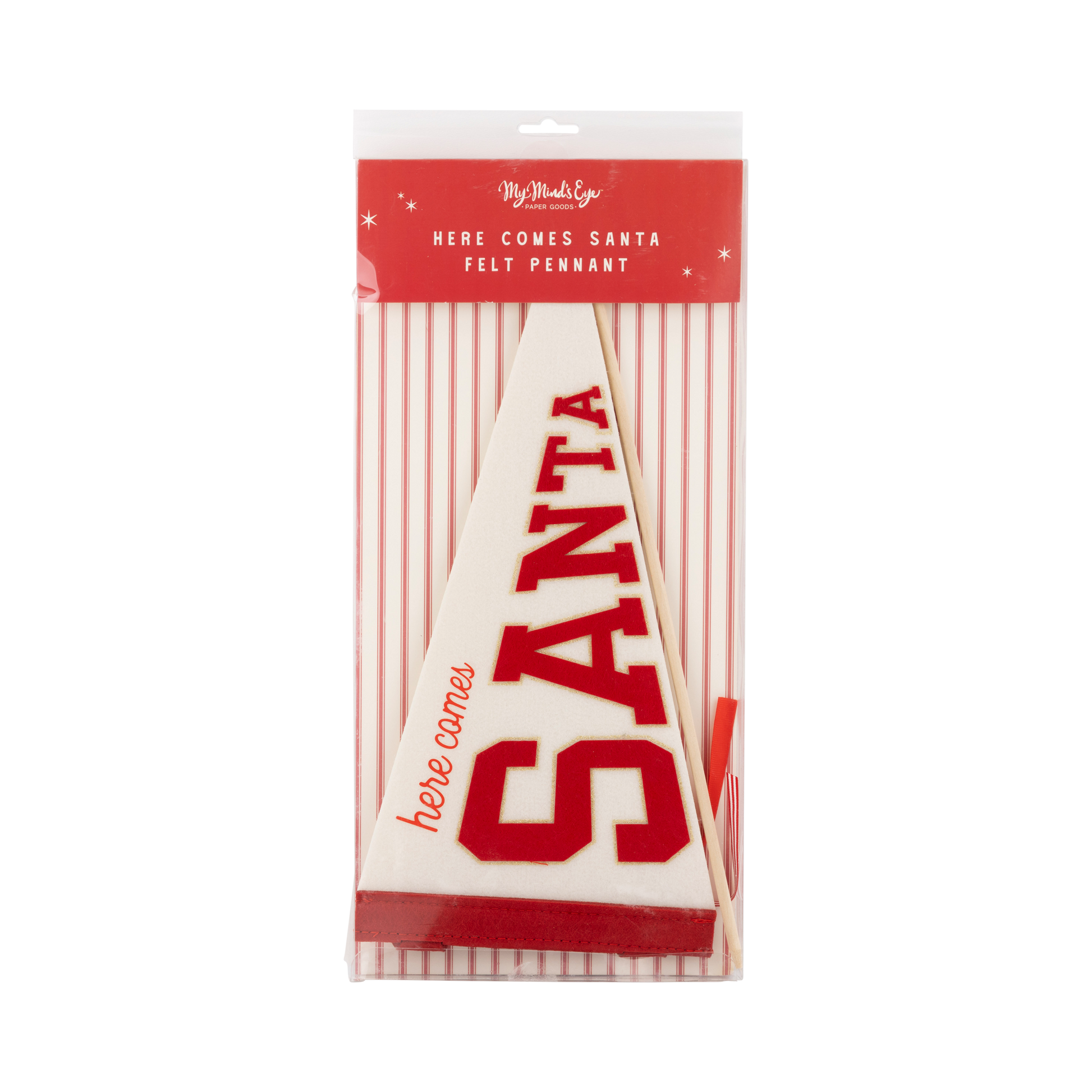 Get ready to welcome jolly St. Nick with our Felt Pennant Flag! With its festive "Here Comes Santa" design, this pennant is the perfect addition to your holiday décor. Hang it up and spread some cheerful holiday spirit to all who see it!