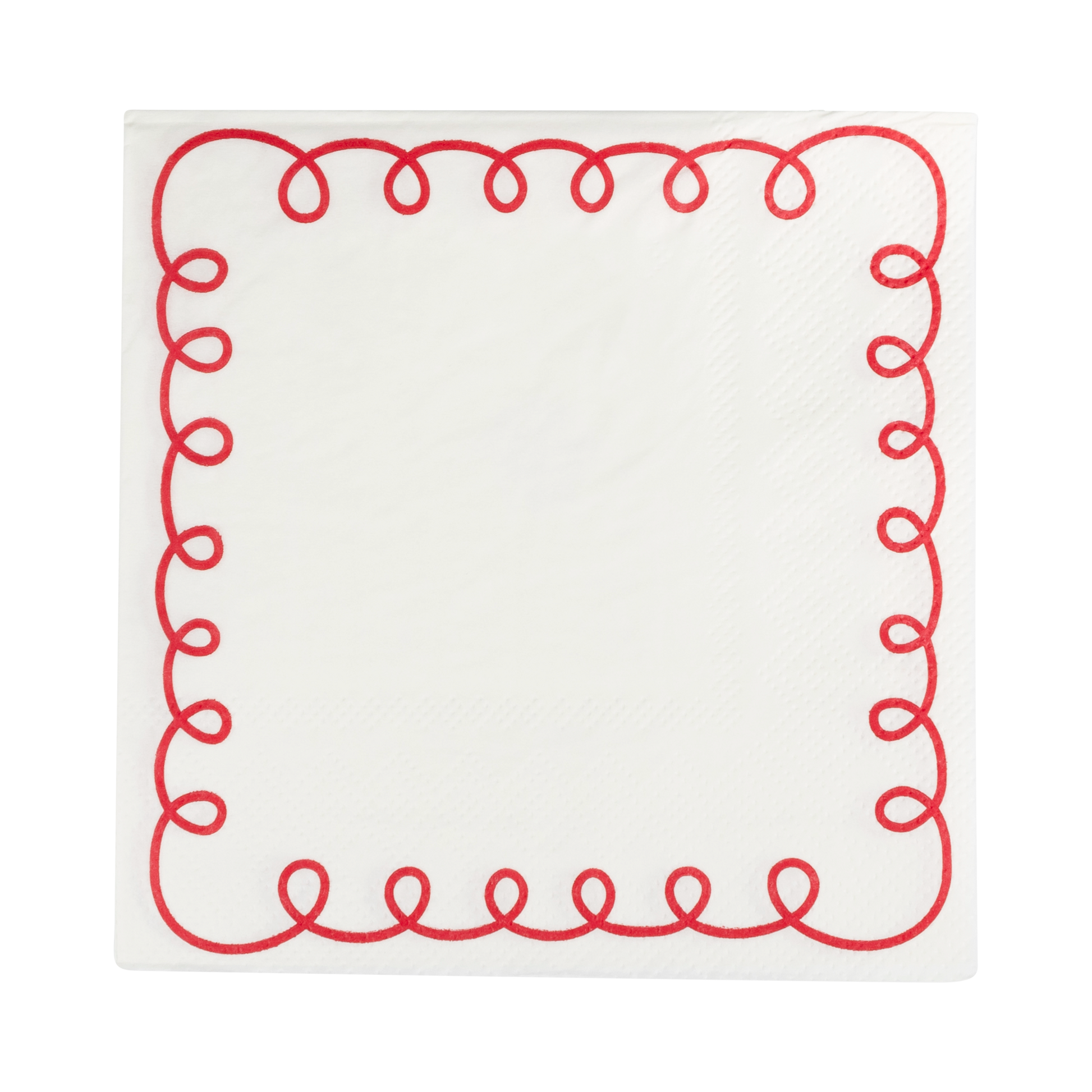 Add some whimsy to your next party with our paper cocktail napkins! Featuring a playful red scalloped border on cream, they're sure to charm your guests. Perfect for any occasion, these napkins bring a touch of fun to any table setting.