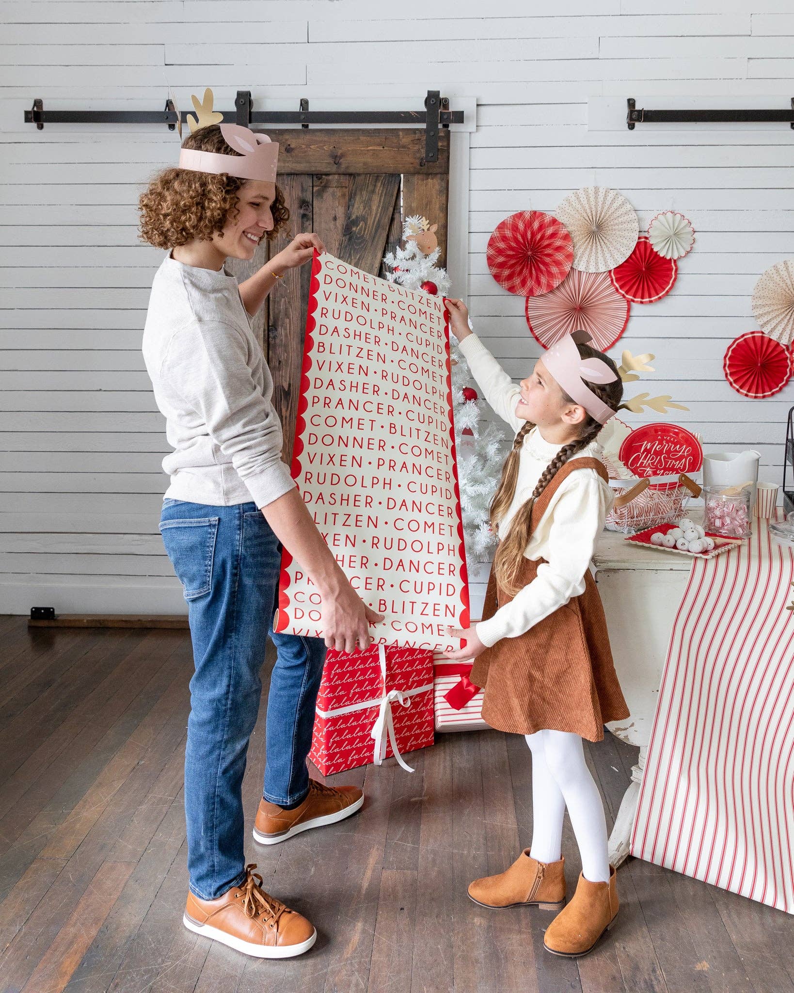 Creating a festive tablescape this holiday season is all fun and reindeer games with this fun table runner. It features all of your favorite reindeer names in a traditional red and cream color scheme, making it the perfect backdrop for a cozy Christmas table. Use this table runner with our shaped reindeer plate and dot cocktail napkin to set a whimsical table that can be cleaned up before Santa comes down the chimney!