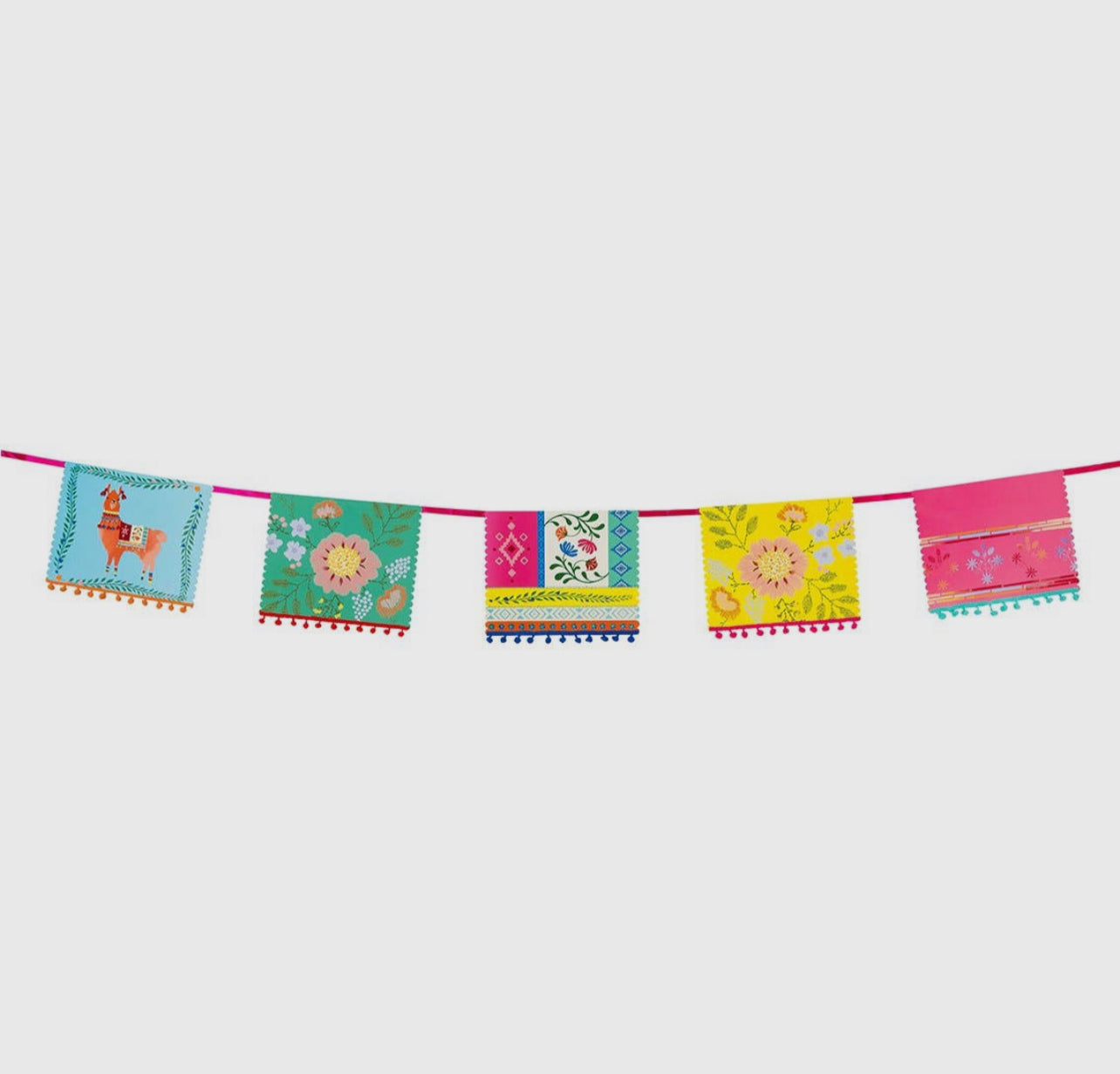 This paper garland features fun llamas, bohemian flowers and pom pom edging. Simply hang this party decoration on the wall, in the backyard or across the ceiling to make your guests smile.