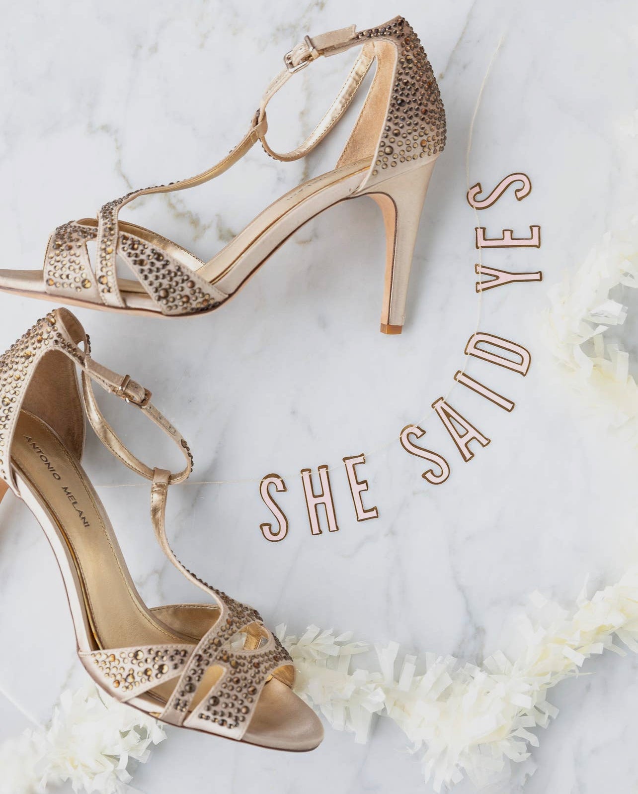 She said yes, so it's time to party! Set the stage for your bridal festivities with this chic banner set. The "SHE SAID YES" word banner is the perfect sentiment for your bridal shower, and give your bachelorette party backdrop some texture with this perfectly festive festoon banner.