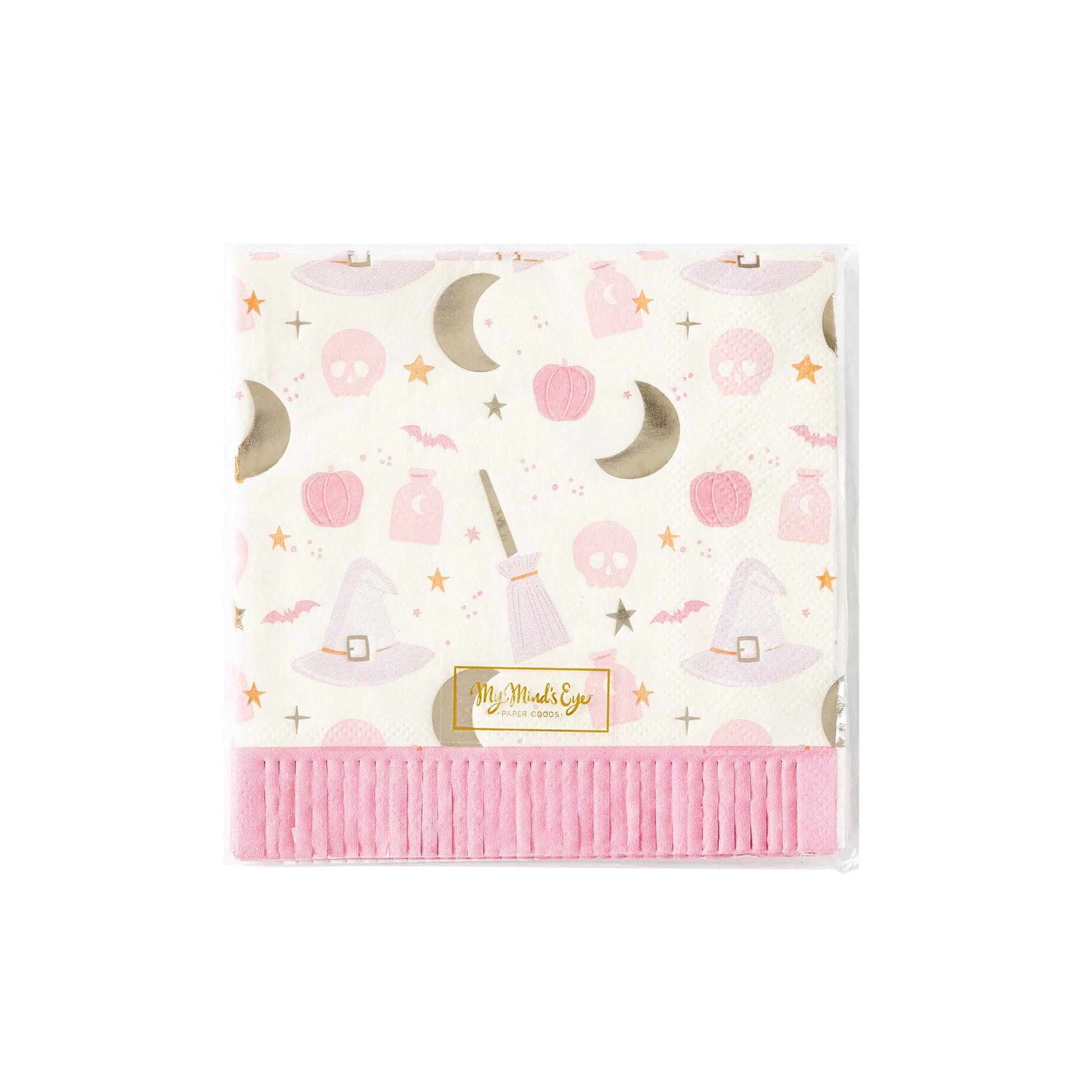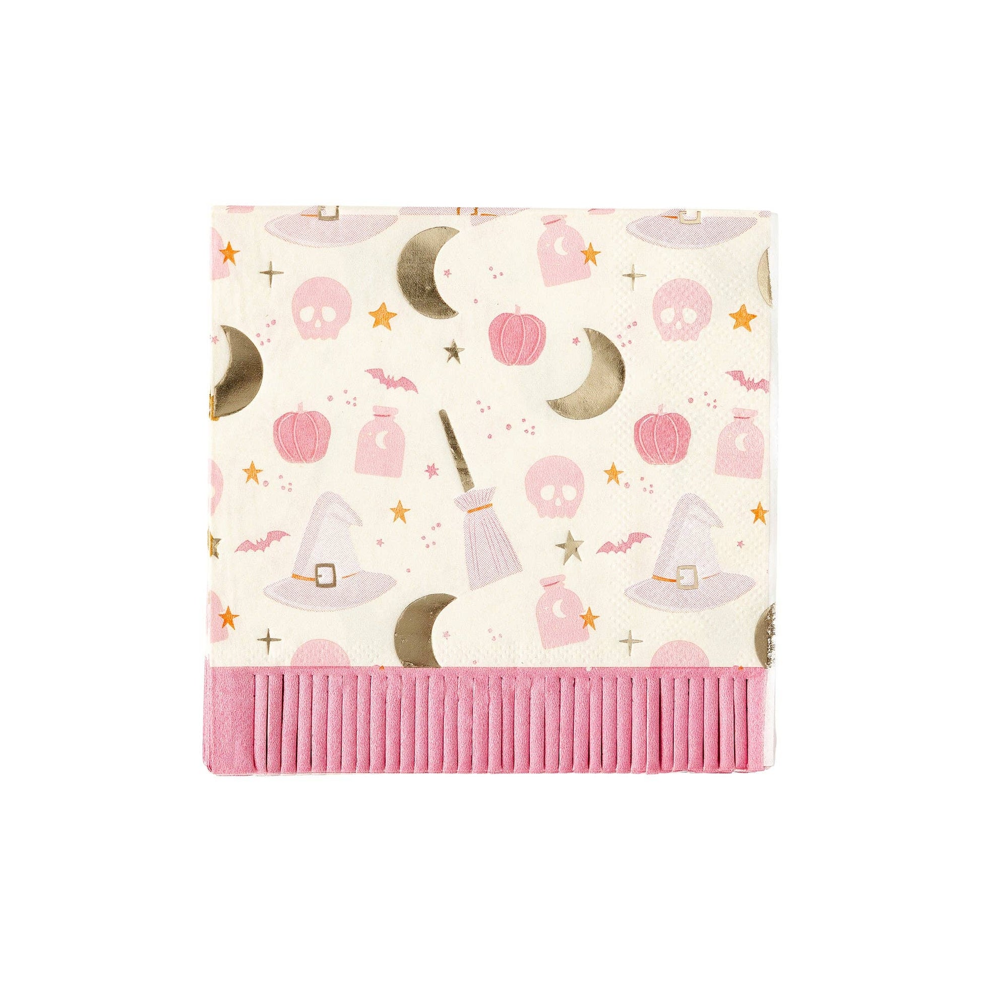 Add some magic to your party with our fringe cocktail napkin! Featuring a fun "hocus pocus" pattern and fringe detailing, these napkins are sure to be a hit. Get ready to impress your guests and make every toast a memorable one!