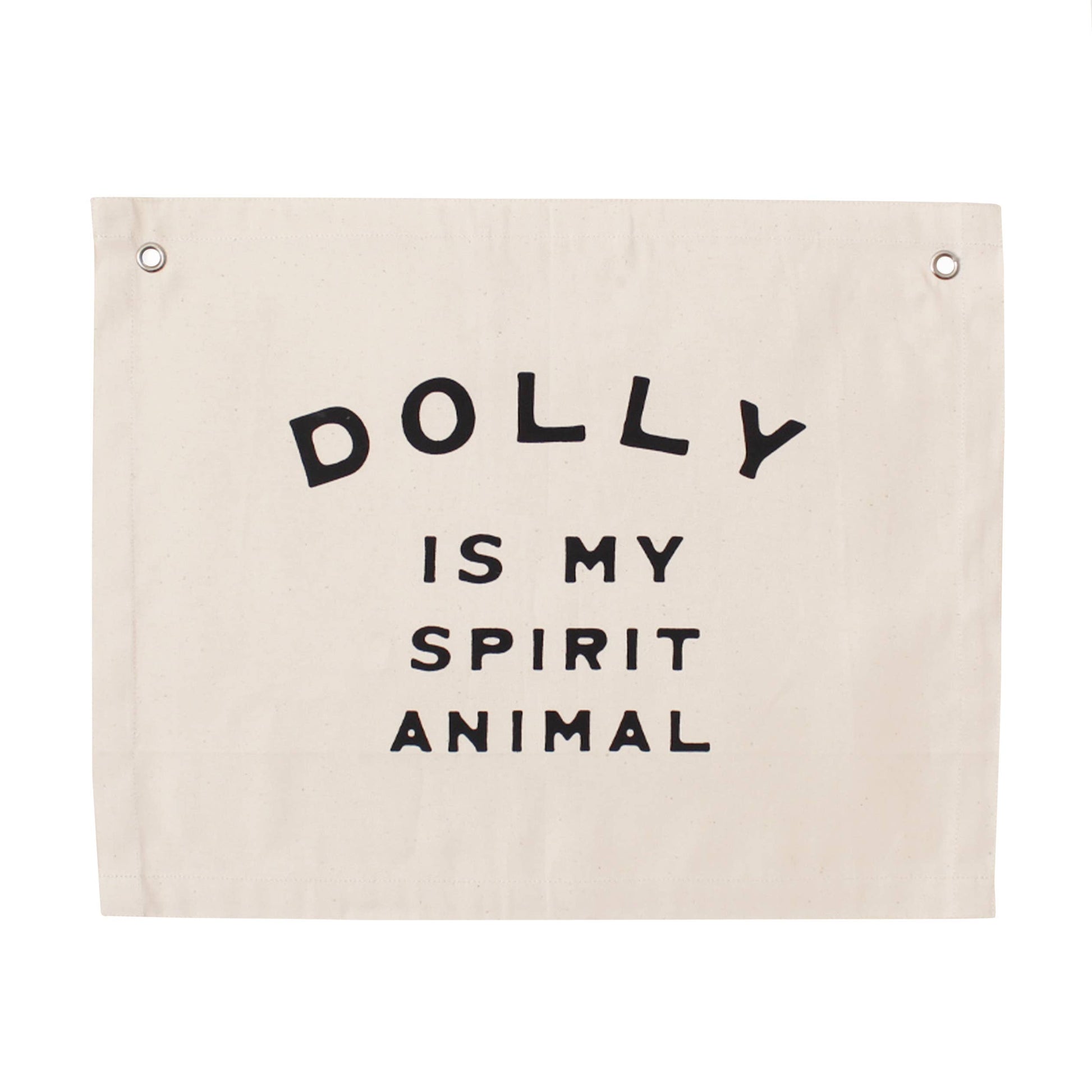 d e s c r i p t i o n "Dolly is my spirit animal" Black screen print on natural canvas banner.