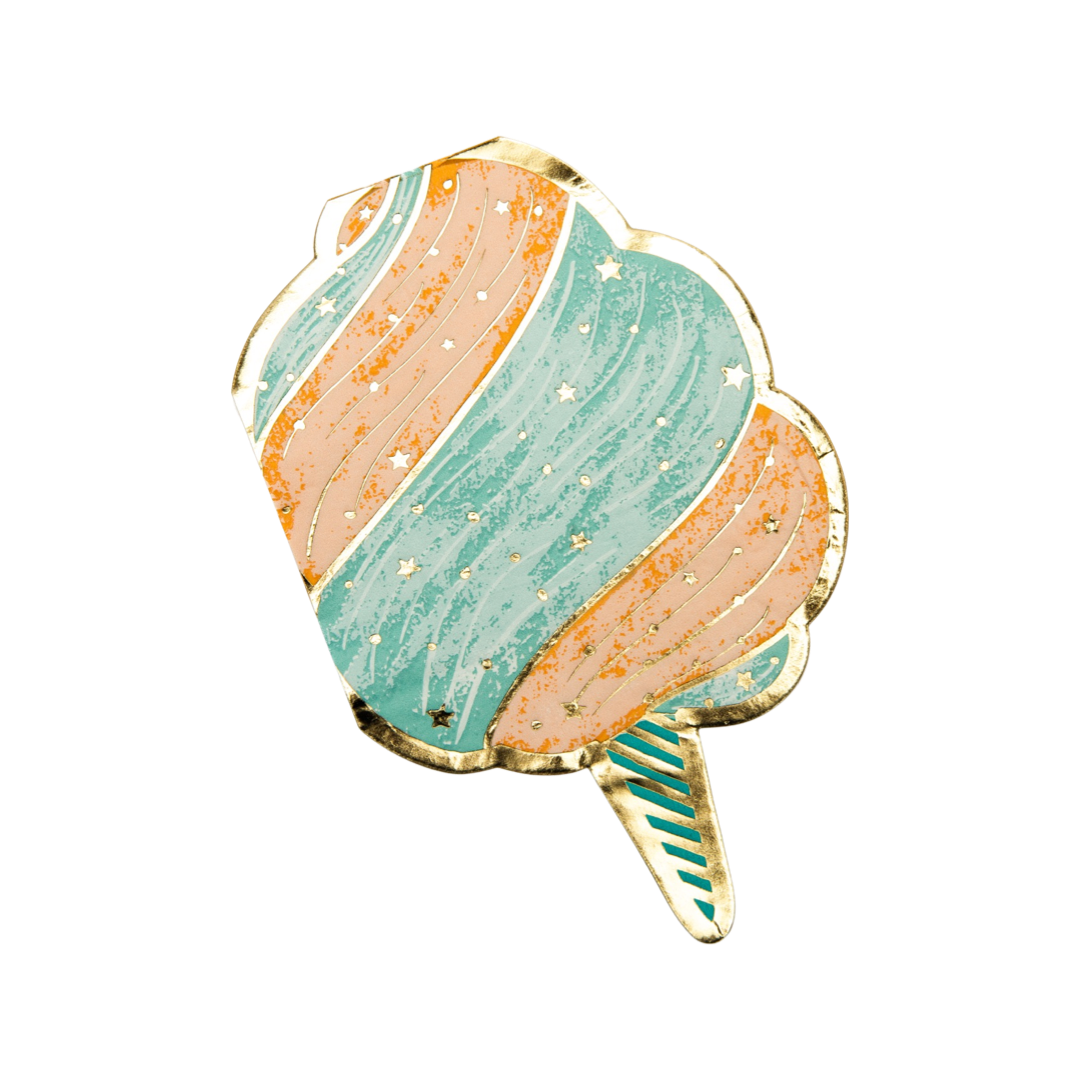 An essential for any birthday party, die-cut napkins featuring a cute and colorful cotton candy design are perfect for wiping up any spills or giving to guests alongside their party food platter.