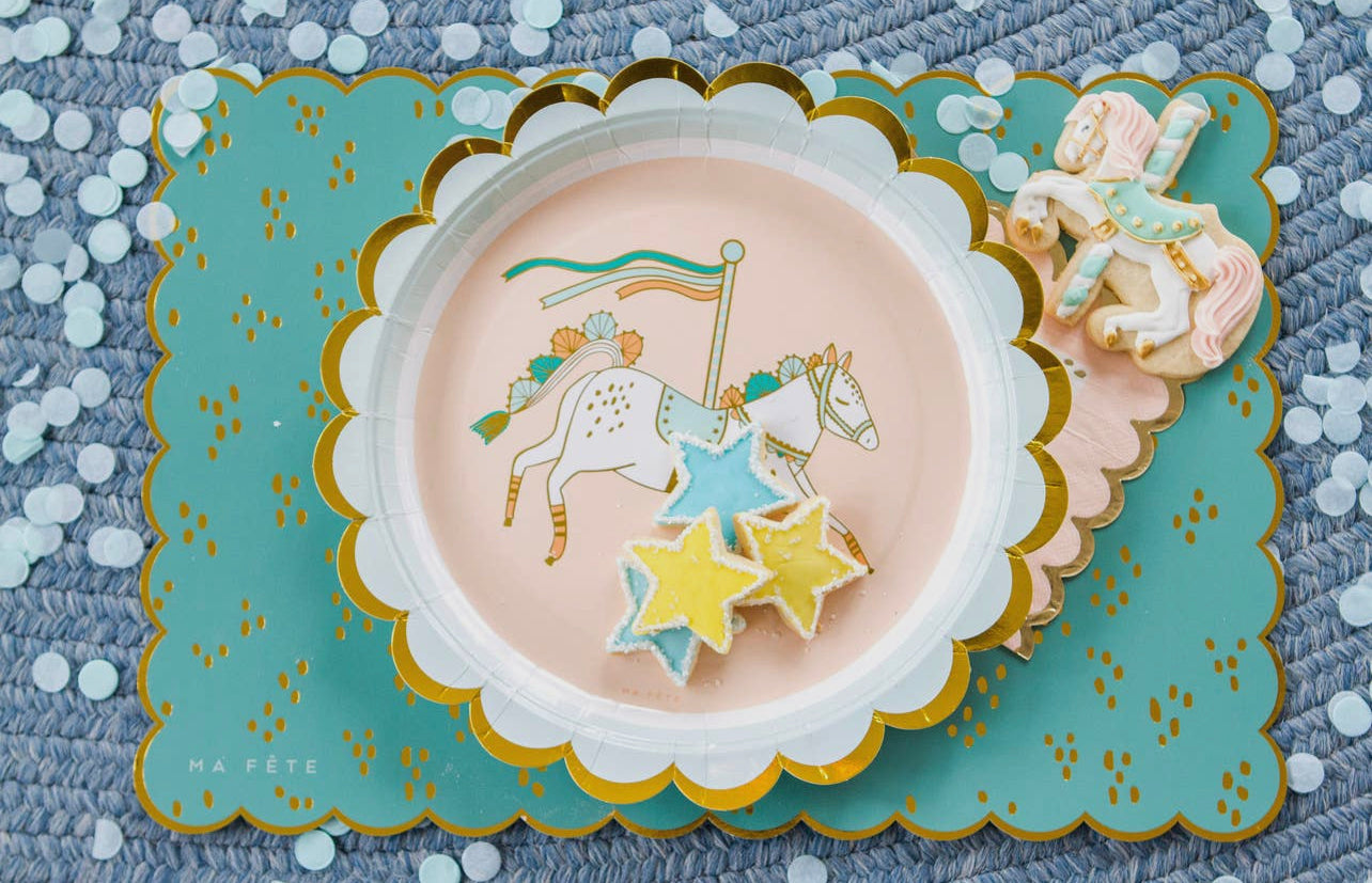 For the perfect snacking spread, the die-cut round platters come in a pack of 4 to create an incredible display of party treats, with elegant scalloped edges to seamlessly match the dinner and dessert plates.
