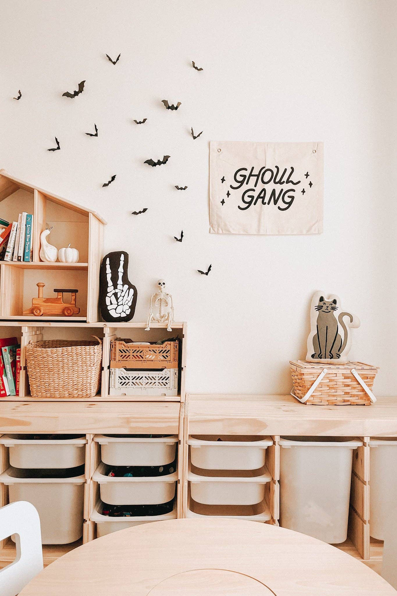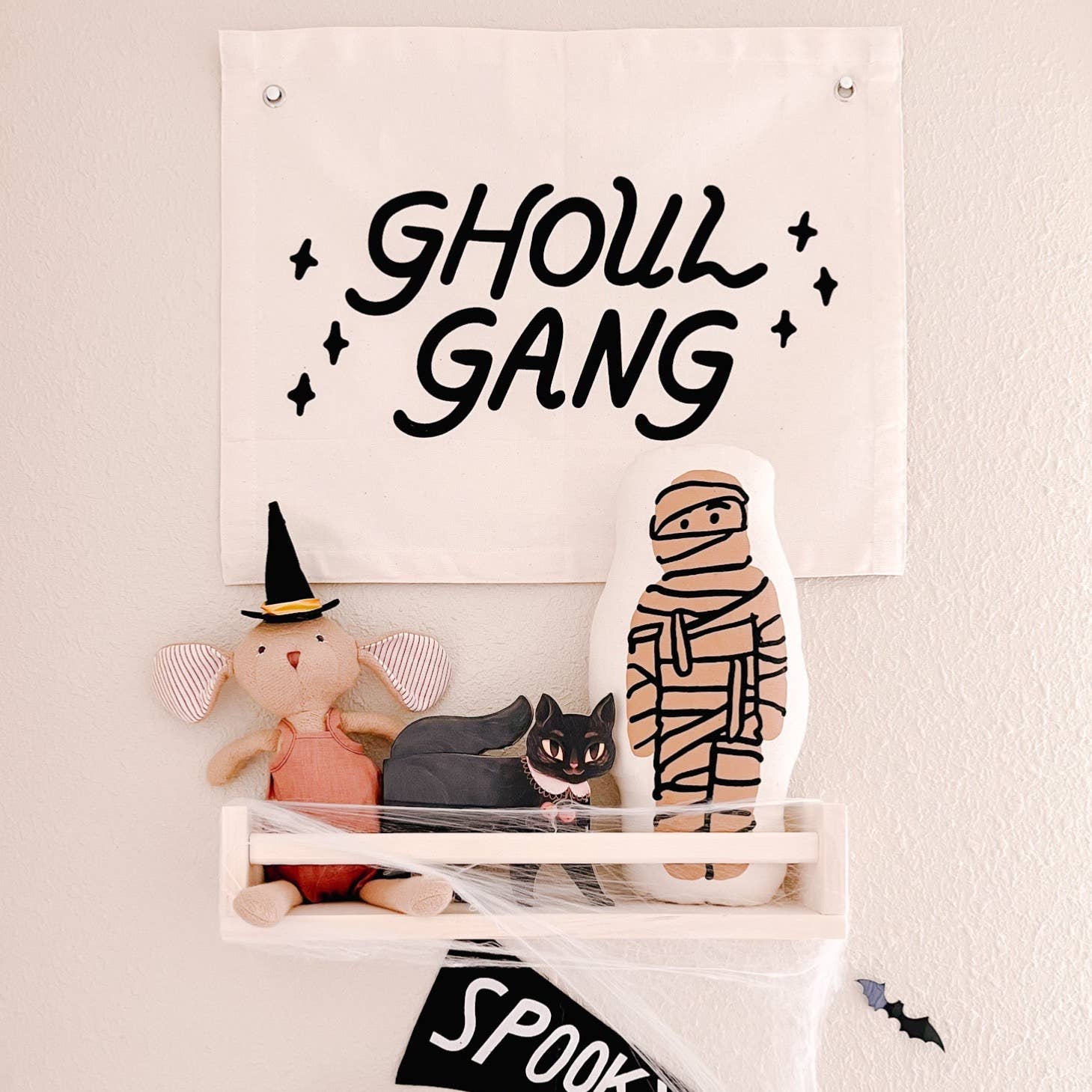 Ghoul Gang Canvas Banner | Halloween Wall Flag Sewn and screen printed by hand on natural canvas by Kenyan artisans