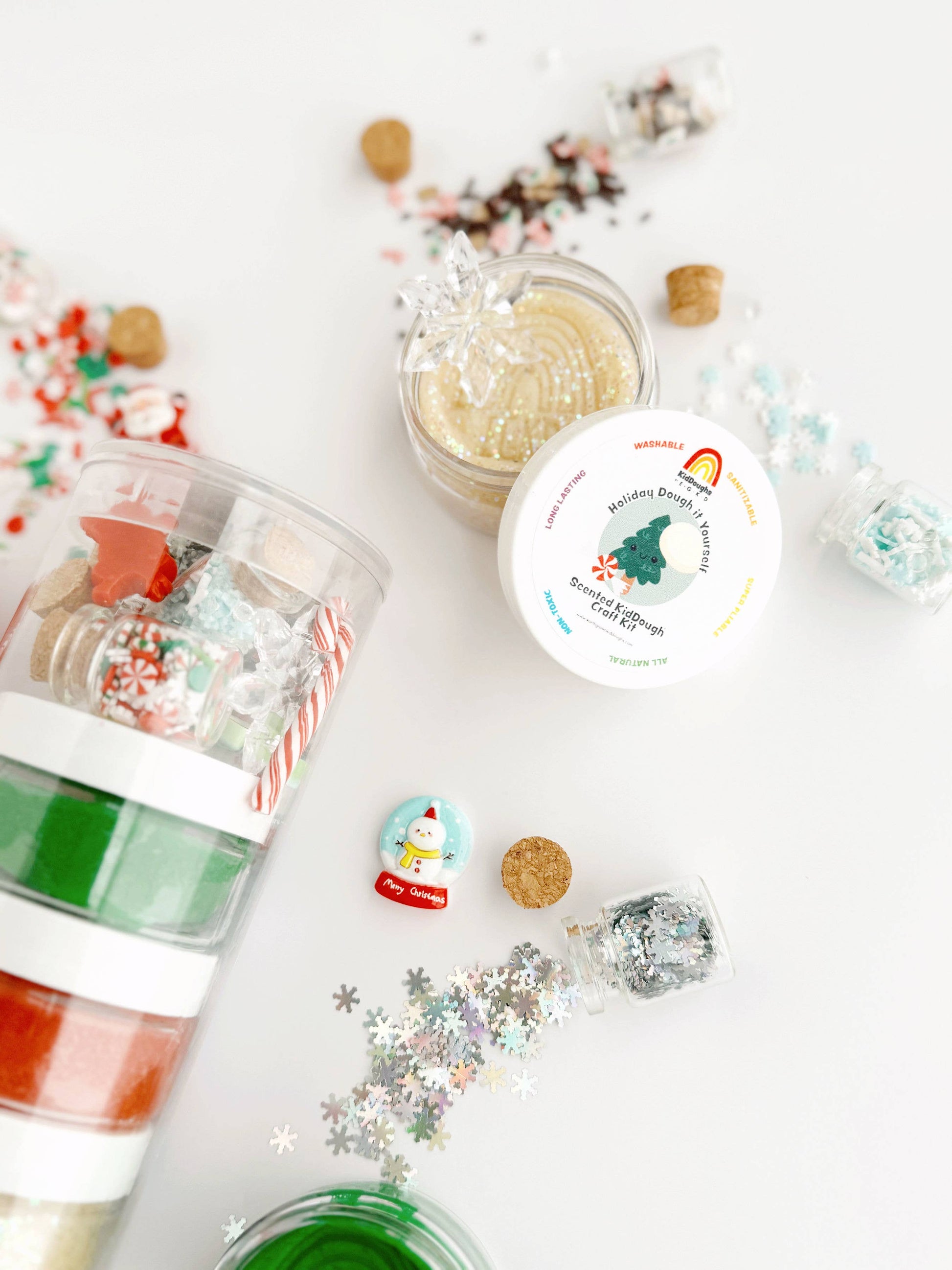 Dough-magine the possibilities! Includes: (3) 2 oz KidDoughs - Green (Christmas Tree), Red (Peppermint) and White (Sugar Cookie) Glittered.