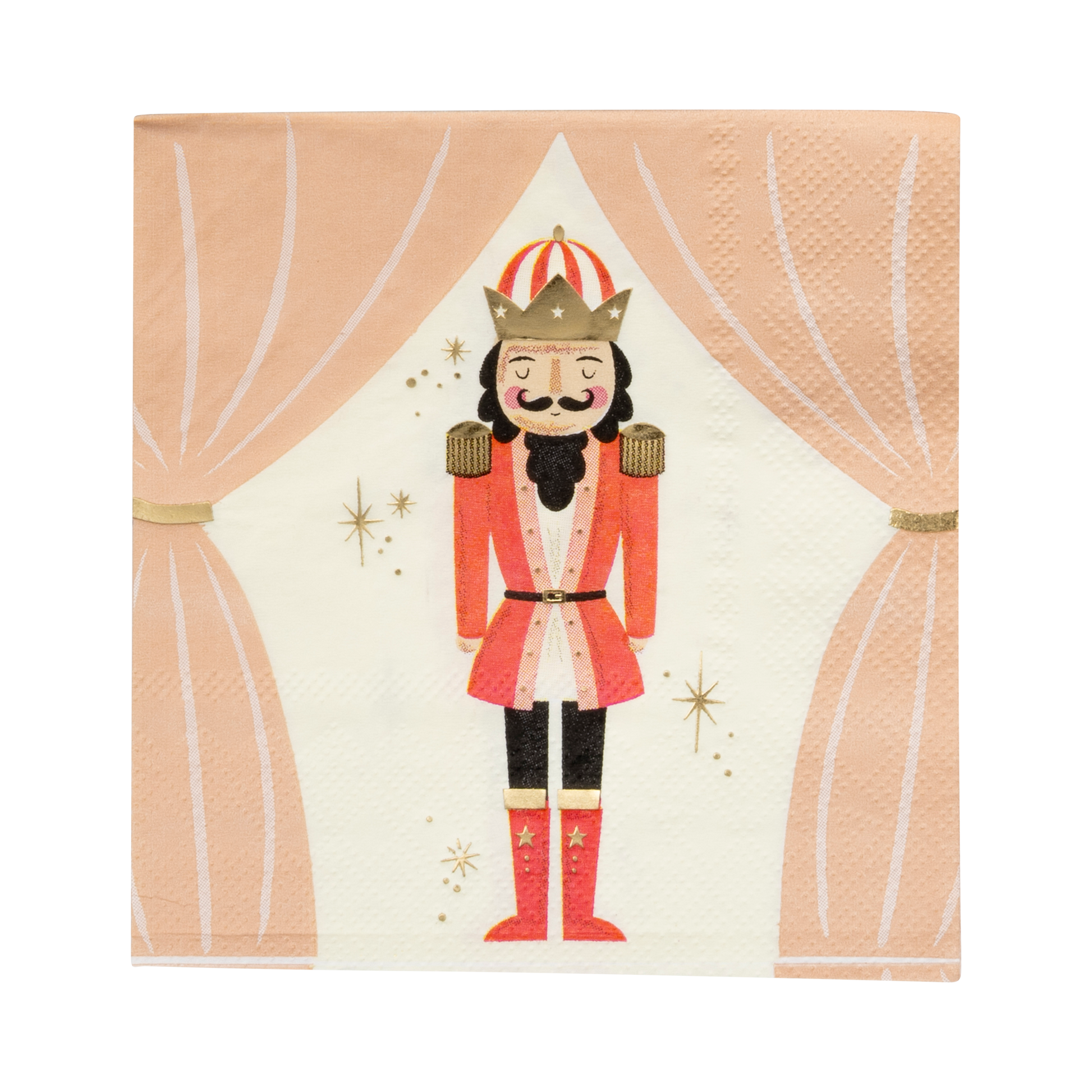 Crack open some holiday cheer with our nutcracker napkin set! Perfect for adding a playful touch to your festive table, these napkins feature delightfully dressed nutcracker characters. Set includes 16 napkins.