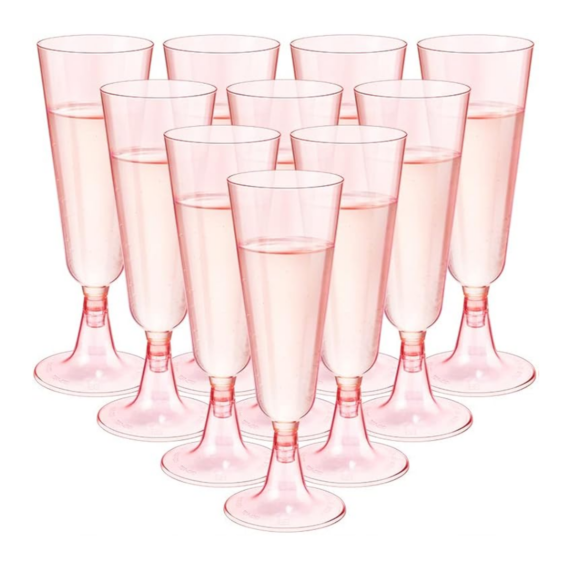 These perfectly pink-tinted plastic champagne flutes are just what you need to add that chic detail to your tablescape or next event.