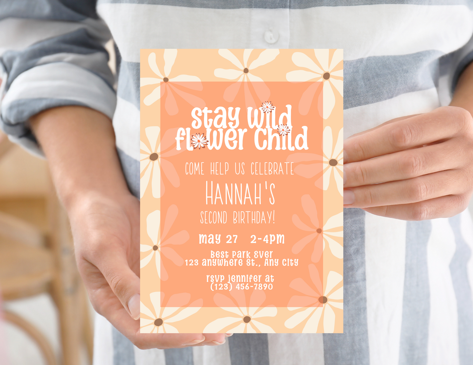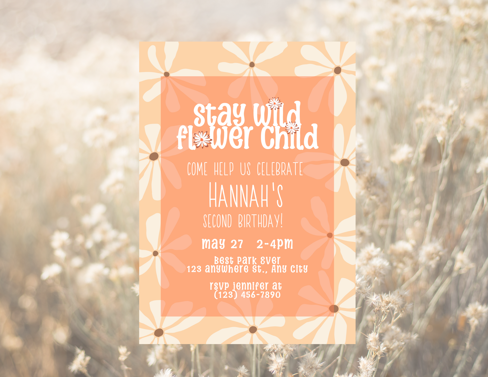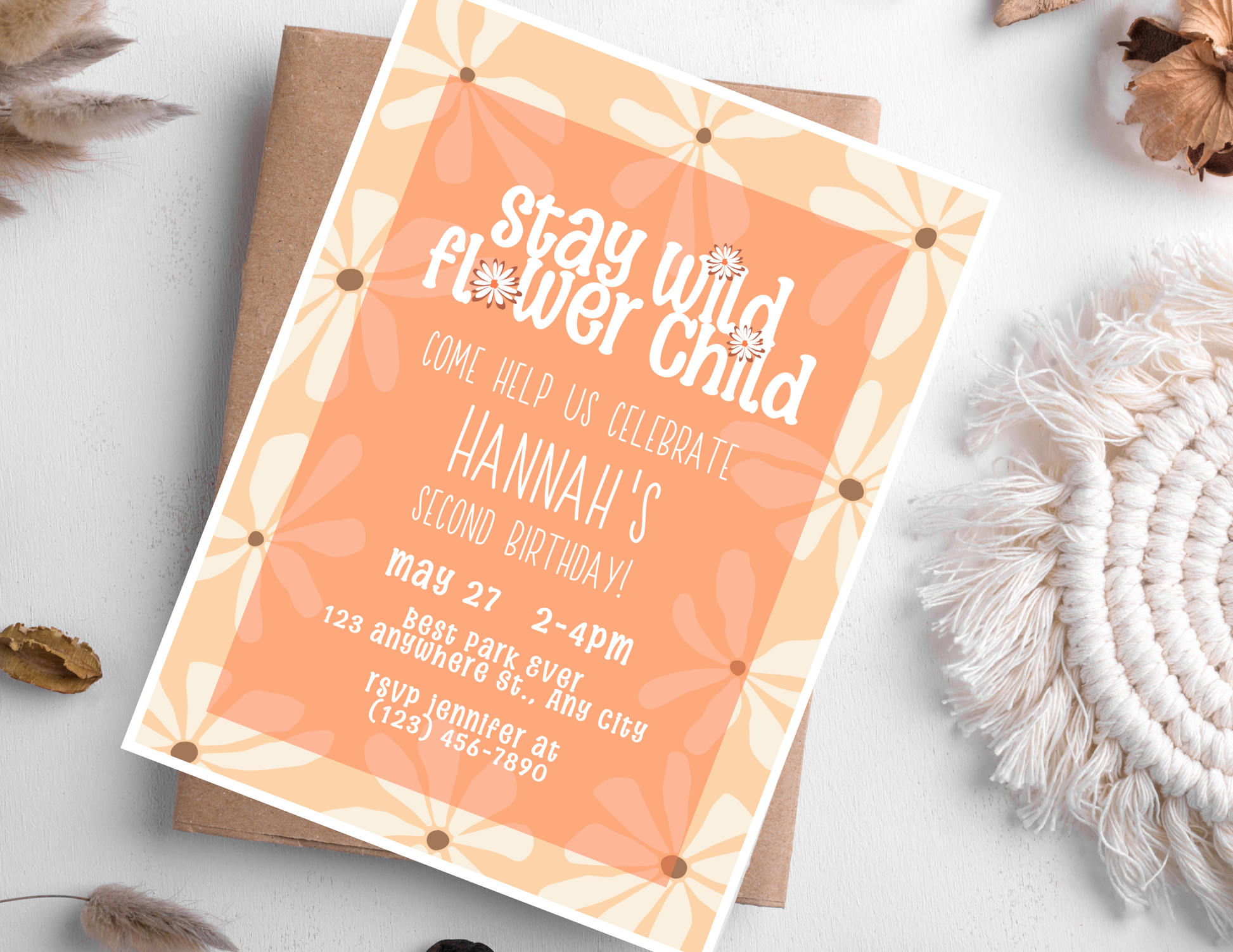 Boho, Boho Birthday, Wild One, Flower Child, Stay Wild, First Birthday, Birthday Girl, Birthday Invitation, Digital Invitation