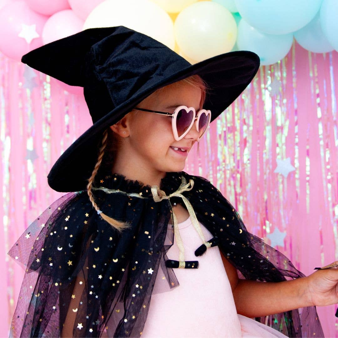 This cape kit is spooky cute and includes everything a little one needs for the most adorable Halloween costume. Capes are made with super soft tulle (that doesn’t scratch or itch!) and paired with a matching wand and hair accessory.